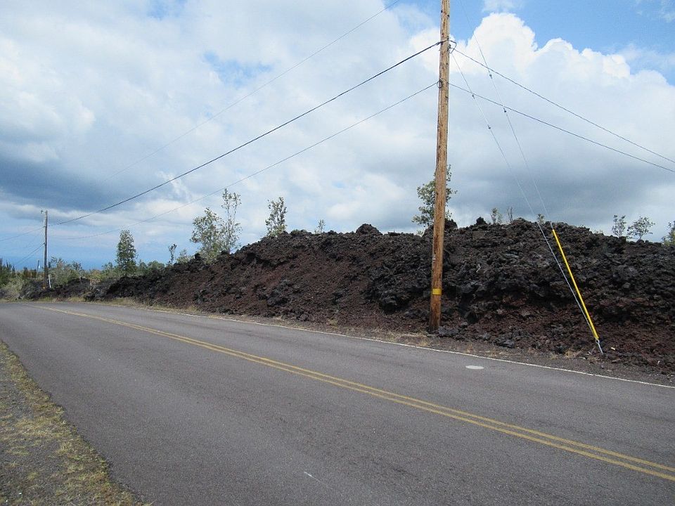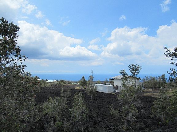 One acre lot on Aloha, just above Leilani on the mauka side. Old power on the street. Mostly lava lot. Some young small Ohia. There is a berm on the front of the lot, once a driveway is punched in you will be elevated & more private from the street. Great Views of the coast & the slopes of Mauna Loa. Only minutes to the Hwy & the shopping Centers