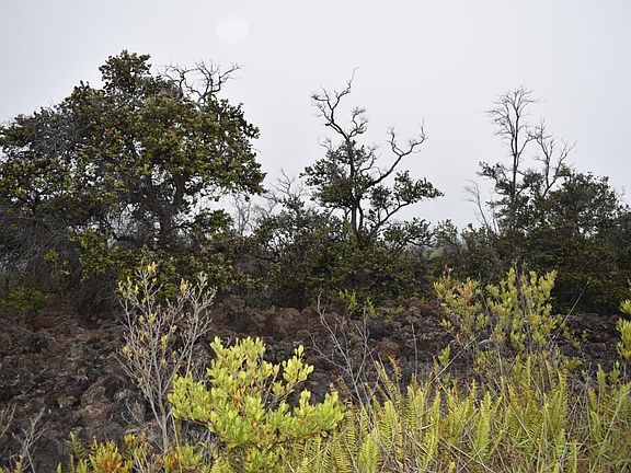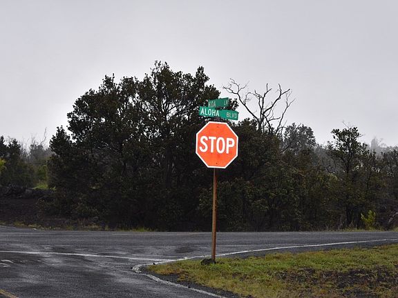Hawaiian Ocean View Estates - wide corner one acre lot (122 ft x 356 ft) in mid-Ocean View with many large ohia trees and an ocean view, which would be best seen from a two-story home. Easy access to Highway 11 down Aloha Blvd which is the last street heading out of HOVE towards Kona. The town center is home to restaurants, grocery stores, gas stations, a post office, hardware store, a salon, a vet clinic and much more. About 50 miles north is Kailua-Kona, where you'll find an international airport and all major services. Per an SSPP check with Helco, they have advised that there is no power available at this lot. More and better photos to follow!