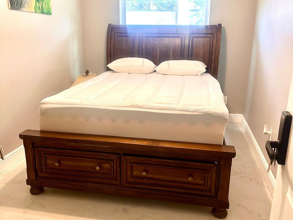The kitchen comes equipped with a fridge, sink, oven, stovetop, as well as upgraded appliances, making it the perfect spot to whip up a meal or two.