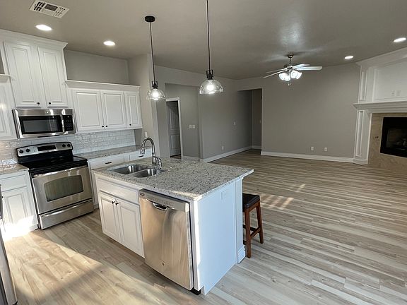 Newly remodeled patio home available December 1, 2025. 3 bedrooms, 2 bathrooms and 2 car garage. This open concept floorplan offers a large living room with fireplace, kitchen with large island and dining room. Small covered patio is off of the dining room area. Dedicated laundry room with a cabinet connected to primary closet for easy laundry care!