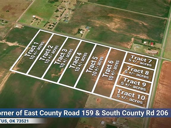Really nice location for 10 ac parcel . Just west of intersection of Racetrack Road ( ECR 159 ) and Veterans Dr ( SCR 206). Just min from AAFB and downtown Altus. Lake Altus and the Wichita Mtns wild life reserve just a 30-40 min trip. Country living with city convenience just a few moments away. Views of mountains to North and East .