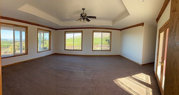 Country home situated on over 200+ acres of rolling hills and vineyards in Jamieson Canyon. Perched at the top of a private knoll you have panoramic views of Napa Valley Vineyards, Mt. Tamalpais, The Bay Area Skyline and Western Mountain Ridge. This single level custom built home features spacious rooms with views from every window. Spacious and efficient laundry room with storage cabinets, sink and built in ironing board. Multiple sets of French doors going out onto the private courtyard and covered surrounding patios. Easy access to golfing at Chardonnay Golf Club and Eagle Vines Golf Club. Close distance to Highway 29 and Highway 80. Wine tasting out your back door at Jamieson Canyon Winery. Low maintenance landscaping with recycled water for all landscaping. Oversized 3 car garage with 2 storage rooms in addition to the large garage.