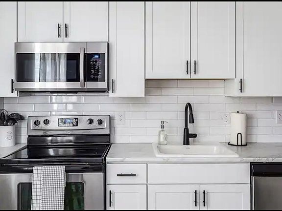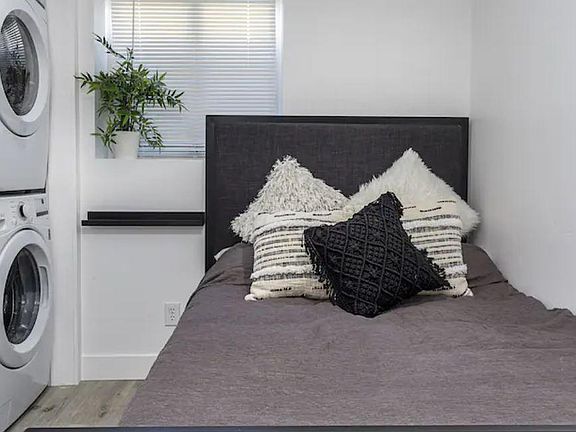 Enjoy a brand new build with plenty of space. Full kitchen and living room combo. The master bedroom has a California king, a small closet, and a desk. The second bedroom has a full bed, and a closet, and is shared with the washer and dryer. There is a full bathroom with a tub/shower combo. The apartment is very clean and up-to-date.
