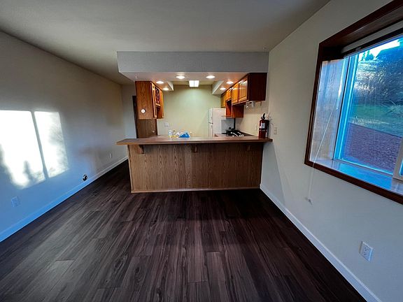 Living room with fireplace and water view and an indoor garage space included. Tenant uses the side entrance through the garage to the apartment. There is a summer Kitchen with slow cooker as cooking source only. Microwave is allowed. No hot plate and no induction stove are allowed. Other appliance maybe allowed upon approval. No laundry- laundromat is 10 minutes drive away. Rent includes Wireless internet, electricity, gas, heat, trash and recycle The rate is for one person only. No smoke. Need W2 income with good credit. No short term lease. At least 1 year. Income to debt ratio less than 30%. There will be $45 credit check fee. Not accepting reusable credit report.