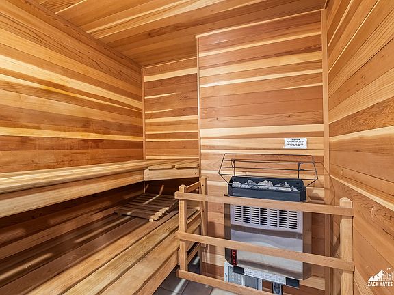 Upstairs includes master bathroom and 4th room with sauna and access to top balcony.