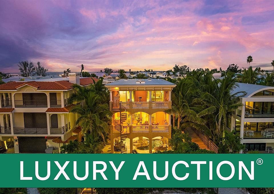 This spectacular, oceanfront estate on north Anna Maria Island’s coveted Bean Point will be sold at Luxury AUCTION on Oct 16, 2025! Selling to the highest bidder Without Reserve! Current list price for REFERENCE ONLY. Inquire for details… Enjoy direct vistas of the beach, ocean and sunset from the privacy of this 3-story residence sited on 0.81 acres. Custom built in 2005 at an increased elevation that kept the home “high and dry” in past storms. Private, oceanfront courtyard and “rock grotto”-style pool with water features, spa, fireplace and cabana bath. Large, oceanfront terraces on central and upper levels, each with outdoor fireplaces and one with “floating” soaking tub and dual rain forest heads. Executive office, private elevator, gourmet kitchen, sprawling primary suite and more! Luxury AUCTION Oct 16, 2025! Selling Without Reserve! Current list price for REFERENCE ONLY. Buyer Brokers welcomed (refer to Luxury Auction Terms of Sale). Do NOT call Listing Agent directly. Instead call Office Ph or 800# in listing. Contact Platinum in advance for showings. Min. 24-hr notice required. Showing schedule: Sept 25 - Oct 15 by daily appt. Call ahead to schedule.