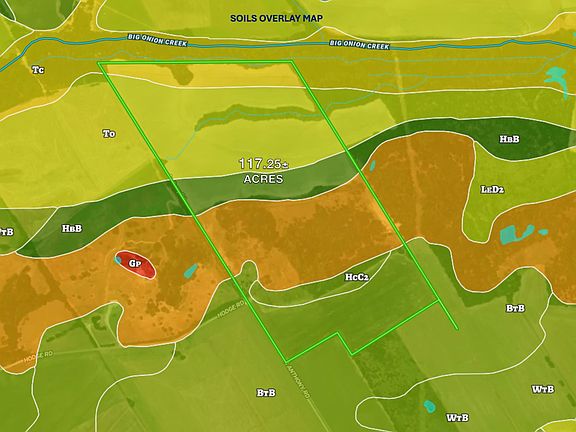 Secluded land with hilltop views of the creek valley, with an excellent build site for a home, recreational opportunities and agriculture. This farm is 117.25± acres with a balanced mixture of pasture and cultivated farm land. Electricity and water is available, and a new septic system is required for sewer services. Big Onion Creek is along the northern boundary of the property which brings in a bounty of wildlife such as deer and hogs. If you're hunting for a weekend getaway or a secluded family farm then come take a look at this opportunity.