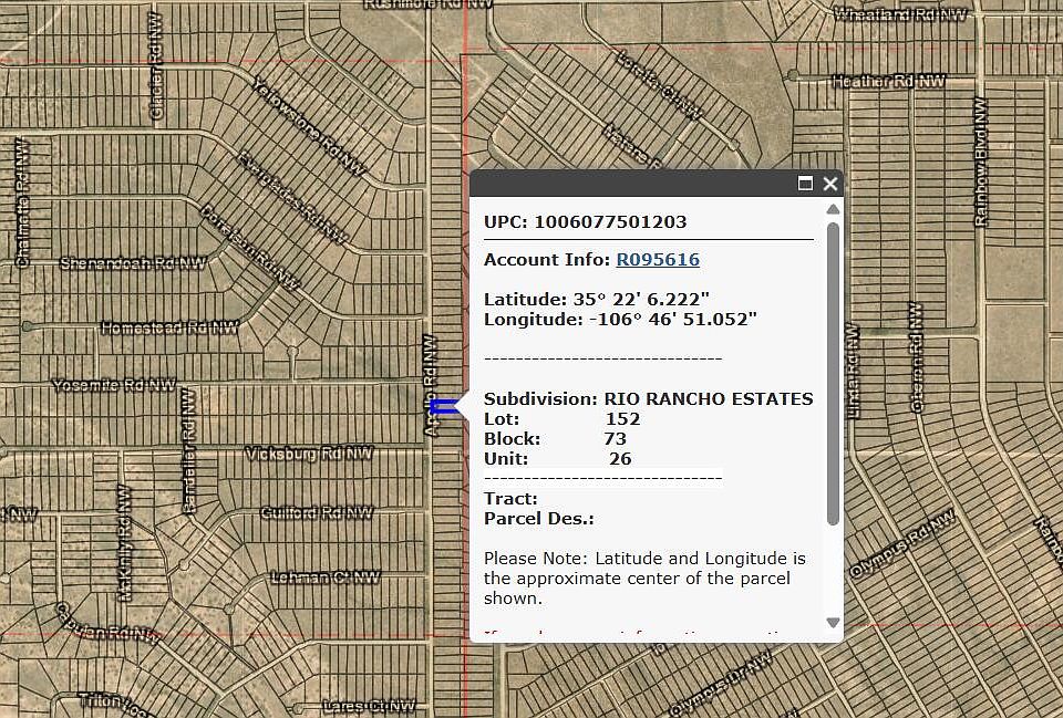 A great opportunity for investors looking to the future! Be ready for Rio Rancho's growth with .5 acres of your own. This lot can be purchased as a package deal with L153 B73 U26, a .5 acre parcel adjoined to the north of this lot. Please note that lot dimensions are approximate.