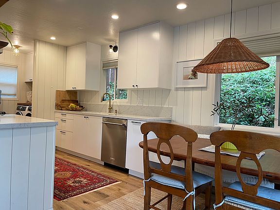 This home is perfect for anyone who wants to relax in a tranquil forest setting but also be only a short walk to gorgeous beaches and upscale bars and restaurants. A sweet two bedroom home with a cozy gas fireplace and all amenities will have you relaxed and comfortable in no time. Three spacious outdoor decks back onto open forest where deer, hawks, wild turkey, hummingbirds and other wildlife visit daily. Enjoy a morning cup of coffee with the waking birds or an evening glass of wine overlooking the redwood trees. It's really an amazing mix of forest, beach, and community.