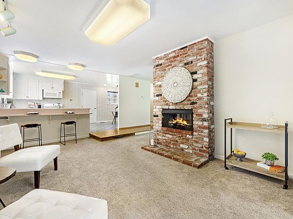 Two sided fireplaceBreakfast barTile flooringStainless steel appliancesNew countersReal oak hardwood flooringUpdated kitchen