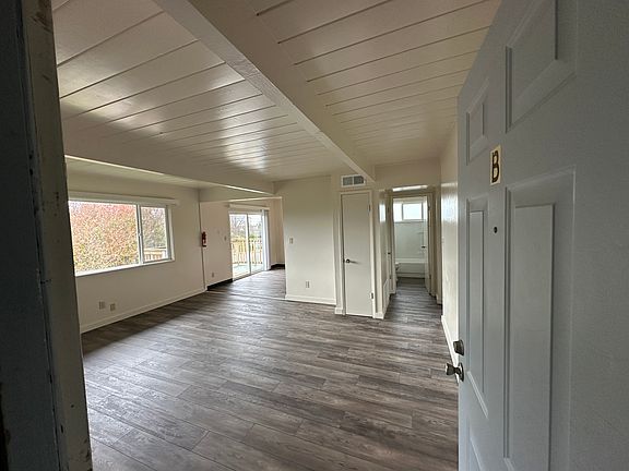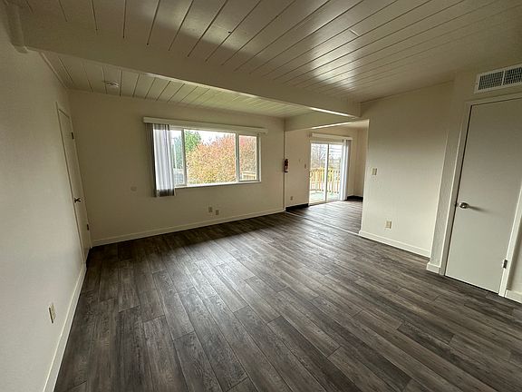 Large windows and sliding glass door exiting to a deck, that faces south and get lots of sun! All renovated. New flooring, new windows, new bathroom, new appliances, fresh paint, and waiting for you. Upstairs unit with no shared walls. Central heat. On site 8ft x 8ft storage (10ft ceilings), Washer/Dryer hookups. Two OFF STREET parking spots, one of them covered in the carport. Large grassy yard with space to garden. 50 feet from Larson Park: tennis, pickle ball, play structures, bocce ball, and lots of open grass. Just beyond is the skate park. At the back is the newly constructed Annie and Mary Trail! Head north to Blue Lake, or south to the Arcata Marsh and even the Bay Trail! All at your doorstep. Tenant responsible for PG&E and water. Owner responsible for trash/recycling pickup and yard maintenance. Available now. Year lease preferred, can accommodate 6 mo. lease or shorter for the right scenario. $1500/mo rent and $1500 deposit. Showings being scheduled now!