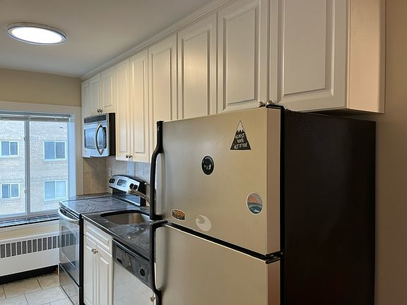 East - Large unit in a very well-maintained brick building with freshly painted and updated common hallways and 2 new elevators. Renovated galley kitchen with granite counters, upgraded cabinets, ceramic tile floor, dishwasher, disposer, and microwave. Breakfast bar from kitchen open to living room. 6 closets. Refinished hardwood floors. Freshly painted walls. Superintendent in building. Card-operated laundry. Storage bin. Off-street parking for 1 car. On bus lines. No pets and no smoking. Heat and hot water included in rent. (Pictures shown may not be the actual unit but they accurately represent the style, condition, and quality.) 12-24 month lease terms allowed; actual rent is $2,250, but one month is free, so the effective rent for a 12-month lease is $2,063.