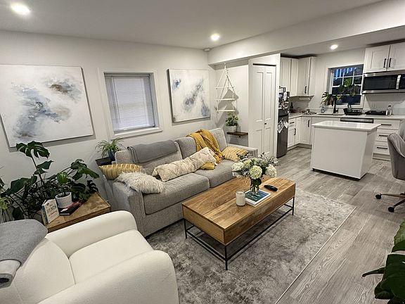 Enjoy an open-concept main level, 1 loft style bedrooms, and 1.5 modern bathrooms throughout. The custom kitchen comes equipped with new appliances, lots of storage space and a moveable island. The unit has perfect natural lighting, in-unit washer and dryer and modern finishes.