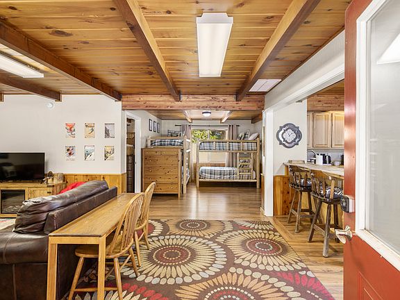 1,400 SF Furnished Cabin in Arnold, CA. Space marked as basement and storage are not available to tenants.
