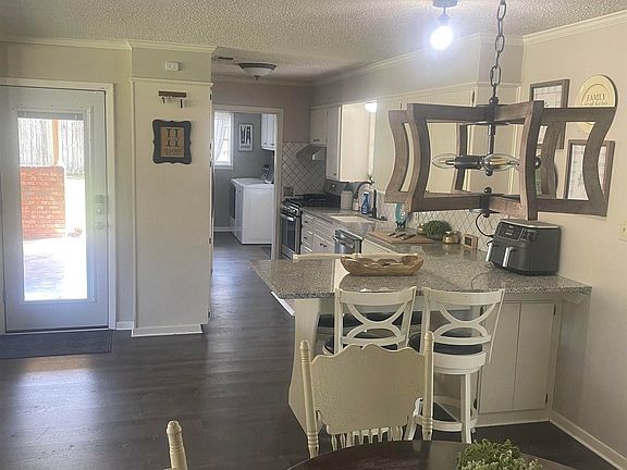 Beautifully updated! Ready to move in! New flooring, new paint, new counters, back splash and many other improvements. Open floor plan in kitchen-living area. Appliances stay. Very nice, private back yard. Large storage/man cave, that comes furnished (excluding tools) Dead end road.