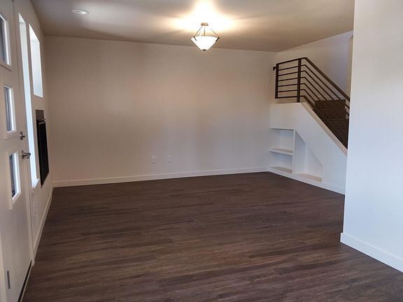 Contemporary newly built townhome in an ideal location. Close to downtown and the University. Three bedroom two baths. Vaulted ceilings in the living area. Open kitchen and dining. Easy care vinyl plank flooring. Lots of light and windows. Gas fireplace and covered outdoor living space. Ductless heating in each room and on-demand hot water heater. Washer and dryer and attached garage. Lovely modern finishes with views of the hills. Enjoy contemporary living in a central location.