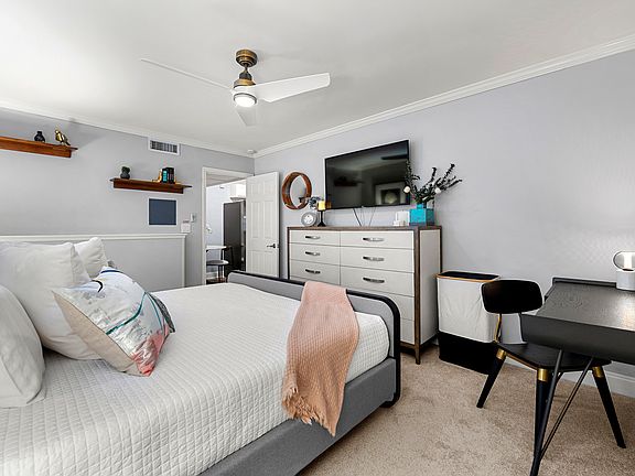 Elegant and updated condoBrand-new stainless steel appliancesDesigner furnishingsWalk-in closetLarge bedroomStorage nookKing sized bed