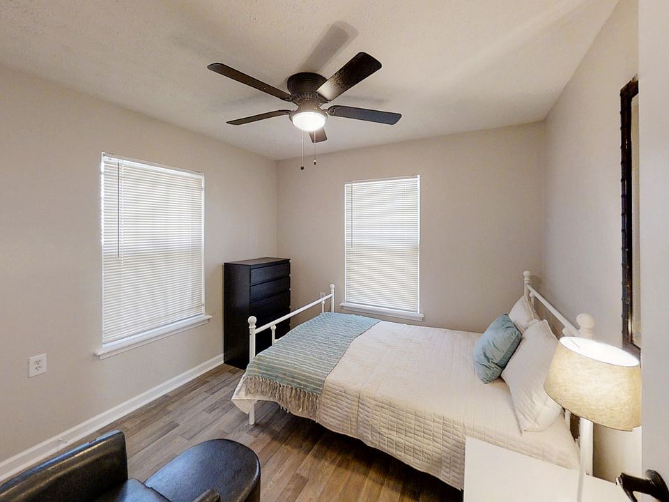 This modern home, sitting on a quiet wooded lot, has all of the modern updates next to convenience of 2 bus lines. Relax on the shaded front porch after work or cook dinner your new kitchen with modern backsplash, black leathered granite countertops, and stainless steel appliances. Our inclusive house is anti-racist and LGBTQ-friendly, but not 420 friendly. We expect courteous, clean housemates. In general, we expect folks to be adults and handle their own business without being told. Assigned kitchen space and cleaner comes 2x per month for common areas. When applying for this room, you must include details about yourself in the "member message" section. 1 camera in common area, 2 cameras outside. You also must be available to complete an interview within 24 hours of requesting to book.