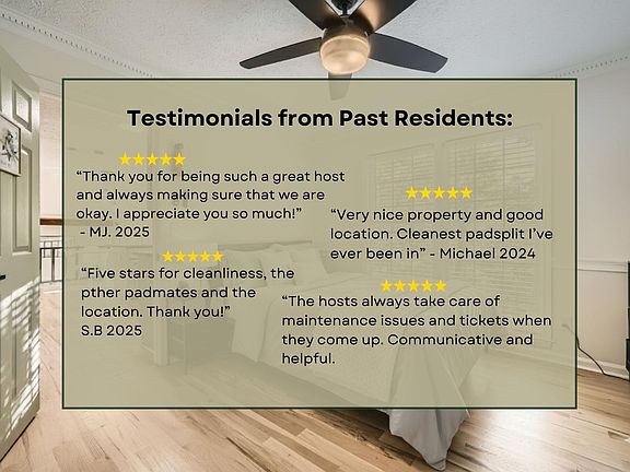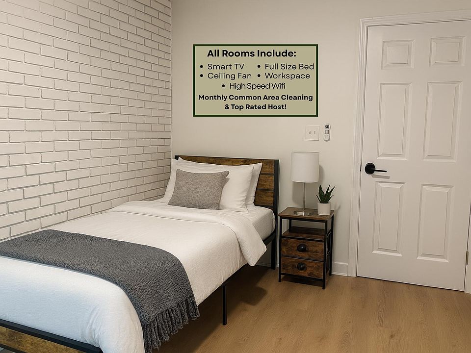 Cozy, comfortable, and fully furnished, this home is the perfect place to call your own! Each room includes: - A memory foam bed (Bed linens and mattress protector are not provided, so please bring your own) - Dresser and nightstand - Mounted smart TV - Dedicated workstation with a desk and bulletin boardideal for work or study! House Perks: - Common areas professionally cleaned every month - Outside space to relax, recharge and enjoy nature Kitchen Features: Fully equipped with a fridge, sink, oven, microwave and dishwashereverything you need to prepare meals with ease. On the counters are a toaster and a coffee maker! Enjoy the convenience of nearby major highways, and the bus stop is about a 10 min walk from the house, giving you quick access to all that Atlanta has to offer.