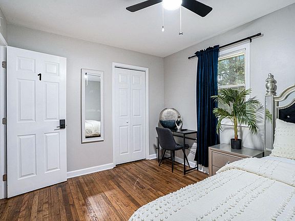 Welcome to your newly renovated, clean, modern retreat in the heart of Atlanta. Each private room comes with its own flat-screen smart TV, creating the perfect balance of privacy and relaxation. The home features a stylish kitchen with updated appliances, cookware, and plenty of space to prepare your favorite meals. Thoughtfully designed for today's lifestyle, this PadSplit combines comfort, convenience, and affordability. Located less than 10 minutes from Downtown Atlanta, you'll enjoy quick access to shopping, dining, and entertainment. Move in today and experience upscale living at a price you'll love! Perks of booking are: professional bi-weekly cleaning, free fast wifi, options to report on time rental payments to credit bureau to build positive credit & more! Spacious Glam room features a clean size bed, smart TV with wi-fi, workstation with chair /personal mirror, & spacious reach in closet.