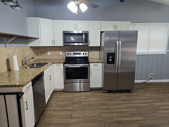 Beautiful home that sits on a large corner lot with a Fenced back yard. 3 bedrooms and 2 baths split level home. 2 bedrooms and 1 bath upstairs and 1 bedroom and 1 bath downstairs. 2 drives with carport. Stainless steel appliances, washer and dryer included. Camera system and ring doorbell INCLUDED Trash service INCLUDED. Pest control INCLUDED. Lawn service can be included (additional). Well kept and establish neighbor. Marta for public transportation 1 min walk and school bus run and drops in front and same street as home. This unit has gas for water heater only, electric and water. In the backyard of CampCreek Market Place.