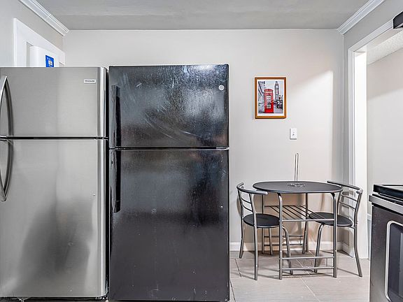 As you step inside, you'll be greeted by an open-concept living space flooded with natural light, featuring gleaming hardwood floors and contemporary finishes throughout. The kitchen is a chef's delight, equipped with 2 fridges, countertops, and ample storage space.