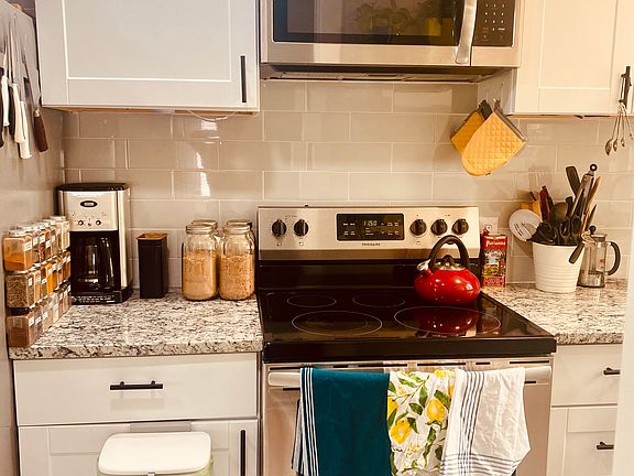 Clean and bright, it is has been completely renovated in 2021 with modern appliances and amenities, including updated kitchen and bathrooms, granite countertops, shiplap walls, tile floors, and ample windows with natural light, while preserving the original bathtub and hardwood floors. The fully functional kitchen has all the stops, from a fully stocked spice cabinet to french press, sushi roller, immersion blenders, and all new appliances.