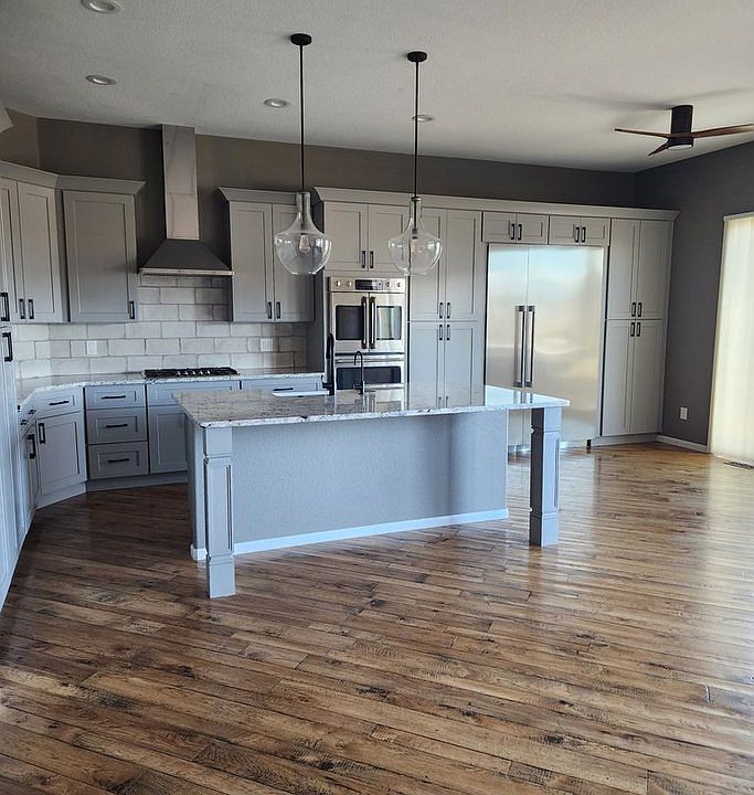 Home has been remodeled, with new chef kitchen upstairs, and 1 1/2 kitchens downstairs. Walk out basement with very high ceilings in the lower family room. 2 master bedrooms, also a laundry room is downstairs. Upstairs is 1 master bedroom with full bath, 1 bedroom with attached full bath, and another bedroom or office with half bath across hall. As well upstairs is dining room, living room, kitchen, family room. Lots of space. Downstairs is full kitchen, half bar kitchen, master bedroom, family room, 2 addl bedrooms, another full bath, and another room with no windows that could be another bedroom or workout room or office. The laundry room upstairs has a brand new washer and dryer in it. Its a 3 car garage. Private culdesac with great neighbors. Trash pick up included. Includes use of HOA card to the gym, pool too, but will be closed til summer.