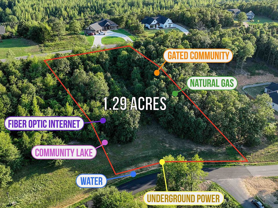 Gated wooded community with two entrances, underground power, water, natural gas and fiber optic internet. Community lake. Restricted to site built homes, 1850+ sq ft, no mandatory builder nor time to build.