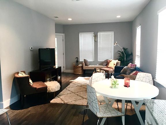This adorable bungalow was completely updated in 2015. New engineered wood floor throughout family room/kitchen, tile in baths and carpet in bedrooms. Modern kitchen with granite countertops and new stainless steel appliances. Laundry closet off of the kitchen with 2015 LG steam washer/dryer. Baths with modern finishes, granite countertops- Master bath has a large shower and secondary bath has a tub/shower combo. Turfed, fenced in yard with lots of shade and a front and back porch.