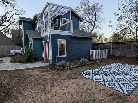 Lovely house in the heart of E. Austin, featuring open floor living room & kitchen and half bath on the first level, master bedroom with walk in closet, Jack & Jill bathroom connecting the two bedrooms. On the second floor there's an open office and a balcony overlooking the fenced-in courtyard full of native Texas flowers and vegetation that attracts all sorts of birds and wildlife. You'll have a private backyard to enjoy and share the courtyard offering a shared stock tank pool for the summer and a fire pit for the winter. It's like having your own park! The house is the back unit and the carport can park two cars. You'll get the privacy and the safety of living in the back house without any compromise. If you're into chicken keeping or gardening, we've got the space set up for you too. Furry friends are welcome, pet deposit is $300/pet. The house is located in East Austin, the cross streets are Gonzales and Springdale. It's within walking distance to many restaurants, bars, coffee shops, breweries, such as Wanderlust Wine Bar, HiSign Brewing, many coffee trucks, De Nada Cantina to name a few. Come be our neighbor! Please note the house is not furnished Tenant pays for utilities, water is shared with the front house. Well trained pets are welcome, pet deposit is $300/pet. Credit check fee is $40 per applicant paid directly to the credit check agency.