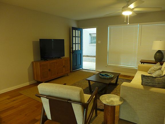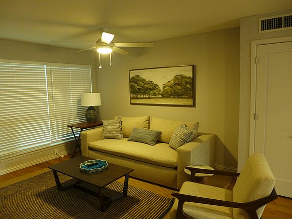 Ideal for remote workers, traveling professionals, or extended stays. The unit is set up for a maximum of two tenants. One bedroom has a king size bed, and the other bedroom is set up as an office with a desk and another couch. Unit has a private patio to enjoy the gorgeous Austin weather.