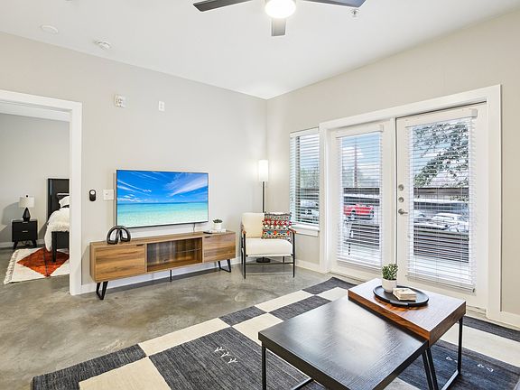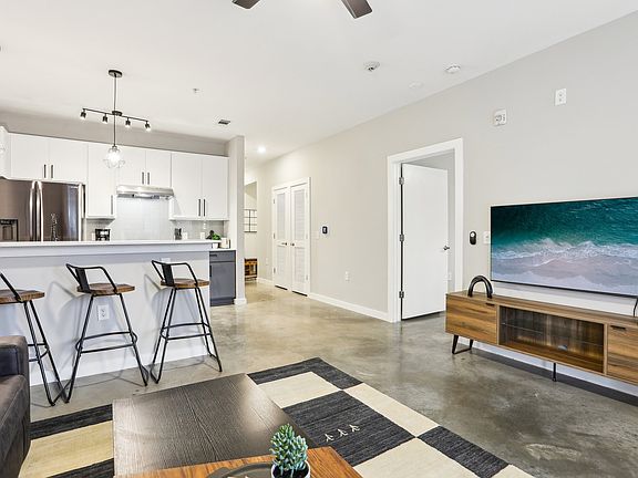 Welcoming you into a serene ambiance, this condo is uniquely configured with two bedrooms. One serves as a primary bedroom complete with a king-sized bed, walk-in closet, and an en suite bathroom, while the second functions brilliantly as an office space equipped with a desk and chair perfect for professionals and creatives alike.The residence spans a single floor, ensuring easy access throughout its well-appointed spaces. Animal lovers will rejoice, as pets are warmly welcomed, and the included two reserved parking spots take the hassle out of downtown living. From utilities to a Google Fiber Internet connection, every detail is thoughtfully included to ensure you enjoy the essence of hassle-free living.The heart of the home, the living room, is furnished with modern comforts, including a Smart TV, a queen-sized sleeper couch, and a chic coffee table, making it an ideal space for entertaining or unwinding. The kitchen, a culinary enthusiasts delight, boasts an open-concept design, stainless steel appliances, and stone countertops, complemented by a cozy bar area with seating for four.A laundry closet with a washer and dryer adds to the convenience. It is set against the incredible backdrop of a concrete floor that lends the space an industrial yet modern charm. The private patio, offering a tranquil outdoor retreat, is furnished with chairs and a table, inviting you to enjoy Austins balmy evenings.The community amenities are nothing short of luxurious, featuring a gym, infrared sauna, cold plunge, and a Pickleball court for the athletically inclined. Two separate dog parks await for pet owners, alongside a garden for those with a green thumb. Ample lounge areas, both indoors and out, including grills, provide the perfect backdrop for social gatherings, while an on-site office supports your business needs.Uniquely positioned in a private and gated community within walking distance of various stores and restaurants.