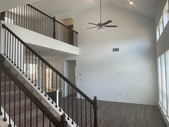 Flat yardLoft areaHigh ceilingsFormal dining roomStainless steel appliancesCovered back patioOpen living design
