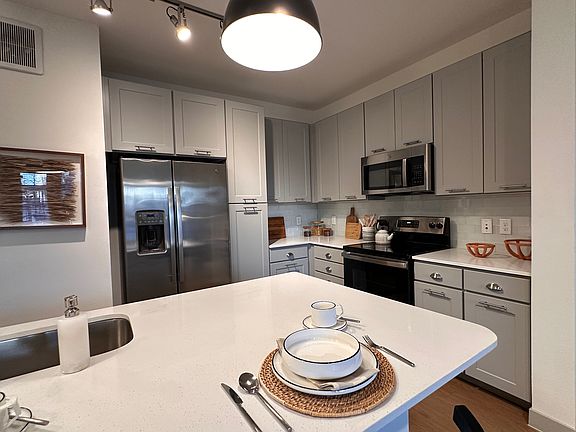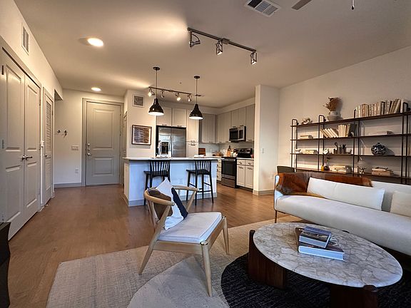 Step into elevated Austin living in this roomy one-bedroom residence featuring an open-concept layout designed for comfort and style. The chef-inspired kitchen showcases elegant finishes, energy-efficient appliances, and generous counter space perfect for both everyday meals and entertaining guests. Natural light floods the living area and bedroom, accentuating the modern wood-style flooring and thoughtful design throughout the home.
