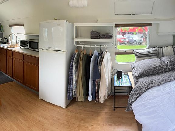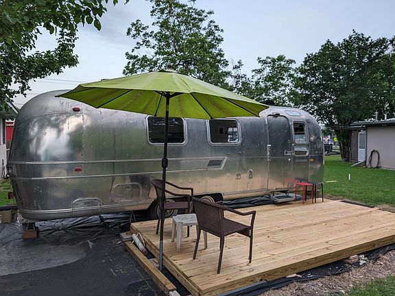 27' Airstream Overlander trailer just remodeled with lots of amenities. Fully furnished unit. Washer dryer access, parking next to home. New Smart TV, Wifi, New AC, microwave, toaster oven, hot plate. Full size bed. Close to major highways, 10 minutes to downtown, 15 minutes to the airport. Near South 1st and Hwy 71. City bus stop across the street. Off street parking. Deck with chairs.
