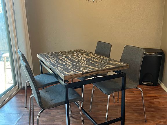 This home has the perfect Mother-in-Law layout. Front room with trundle bed abuts 1-car garage and hall bath. (Three inflatable beds are also available.) Garage-hallway door divides front "guest" area from open kitchen-living-dining space in center. Large Master bedroom with private bath has an organic King bed and overlooks the back patio. For roommates the layout allows the right balance of interaction and privacy. We have rented to regular 12-month tenants, and every single one has renewed. Longest stay so far is 4 years.