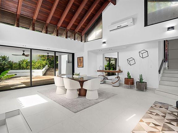 Located in the exclusive gated community of La Colina in Guaynabo, this impressive 3,700 sq ft split-level residence sits on a spacious 1,372 sq mt corner lot and showcases beautifully remodeled interiors with attention to detail throughout. High vaulted ceilings and floor-to-ceiling windows bring in natural light, creating a smooth connection between the indoor and outdoor spaces. The home benefits from great natural ventilation, and its corner location provides added privacy and a sense of openness. The updated kitchen and bathrooms feature high-end finishes, complemented by brand-new windows that enhance the unique style of the home. The generous outdoor space is ideal for relaxing and entertaining, featuring a private pool, terrace, outdoor grill, and plenty of room for gatherings. La Colina offers 24-7 security, along with amenities such as a tennis court, clubhouse, and playground. With only 60 homes, the community provides a peaceful and safe environment. It is also conveniently located near top schools, restaurants, supermarkets, and shopping.