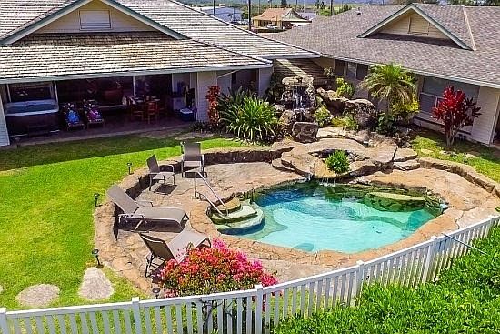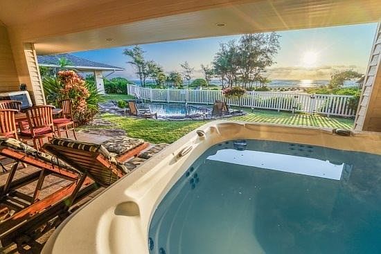 Absolutely Gorgeous Ocean View Home in the Heart of Kapa'a Town. 3 Bedroom 3 bath all on one level. Great Room Concept with the wide open views of the Ocean. Two Master Suites. Hardwood floors. Updated bathrooms and Kitchens. Fully Furnished. Very well appointed with extremely beautiful artwork. New Fridge, Microwave, Water Heater. Granite Counters. Great Storage. Swimming Pool and Hot Tub. Pond with Waterfall. Large Covered Lanai. Fenced Yard. This is an amazing home!