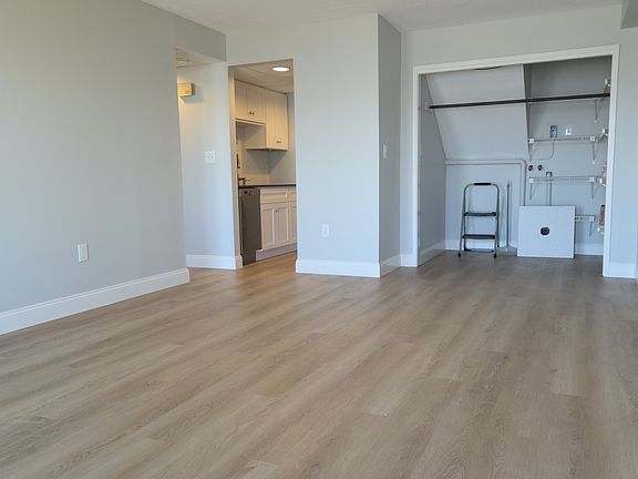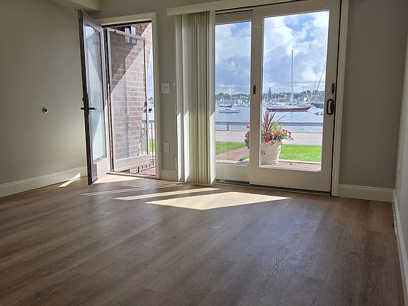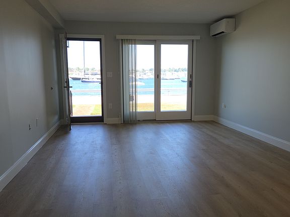Waterfront! Yearly, unfurnished - 1 bedroom 1 bath condo rental. Available soon as Oct. 1 Newly remodeled with new wood floors, paint, kitchen, bath, lighting, heat/AC pumps. Goat Island Condominiums located in the harbor of Newport RI! This unit faces to the east and looks to downtown Newport. Some terrific views when driving to and from. The wow is looking at the water from the living room and bedroom. No obstruction. Space is 542 sqft. Living room, 1 bdrm, 1 bath with tub and brand new kitchen with all stainless appliances. W/D are in the large closet in Lvrm photo. There are doors to privatize. Hall pantry closet. Plenty of Parking. Brick Patio space area in front of the unit . This is a gated secured condo association. Amenities in season include a beautiful pool overlooking the Narragansett Bay, tennis courts, basketball cout, Bacci courts. Tenant pays electric and wifi. Some furniture can be provided, ask. No pet policy. Strong credit, background, and references with application.