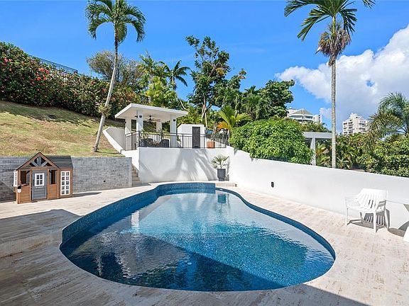 A HOME OF LIGHT AND AIR. Transformed through a comprehensive year-long renovation, this modern residence in La Colina offers a level of design, light, and livability rarely found in Guaynabo. With ~3,100 sq ft of refined interiors on a 1,285 m² lot, the 4-bedroom, 5-bath home combines the warmth of natural materials with a distinctly modern sensibility–vaulted wood ceilings, marble floors, and clean architectural lines that create harmony and calm throughout. The home’s split-level plan flows naturally from a dramatic foyer into open living and dining areas, and then upward to the kitchen and family room—an airy, social heart that opens fully to the terrace through stackable glass doors. The custom Italian kitchen, designed for both beauty and function, anchors the space with sleek cabinetry, porcelain slab countertops, and premium appliances. At its core, the house is defined by light, air, and nature. It feels weightless, filled with sky. Expansive panes of glass and oversized windows bring the outdoors into every room, while skylights and a glass-roofed primary bath ensure daylight reaches even the quietest corners. The central interior garden, visible from every space–including the foyer, living areas, and primary suite–serves as a tranquil focal point, softening the modern architecture with layers of foliage, color, and light. Perched high on a gentle hill, the home captures steady cross-breezes that flow freely through open spaces, offering a choice between natural ventilation and full air-conditioned comfort. Despite its openness, the elevation and site orientation ensure complete privacy: no neighboring views, only sky and green. Outdoors, landscaped terraces and travertine-style surfaces surround a redesigned saltwater pool that continues the seamless dialogue between indoors and out. Every system–from roof and wiring to generator, cistern, and A/C–was renewed as part of a complete modernization of the home, ensuring turn-key ease for the next owner. Set within one of Guaynabo’s most exclusive guard-gated communities, this enclave of only 60 homes offers 24/7 staffed security and an uncommon sense of calm and privacy. Community amenities include a tennis court, clubhouse, and children's playground. Perfectly positioned just off PR-20 (PR-177 exit), it enjoys instant access to top schools, restaurants, and shopping—without the congestion of newer inland developments.