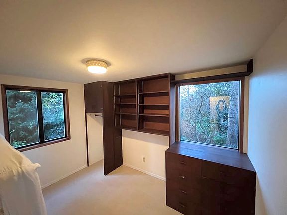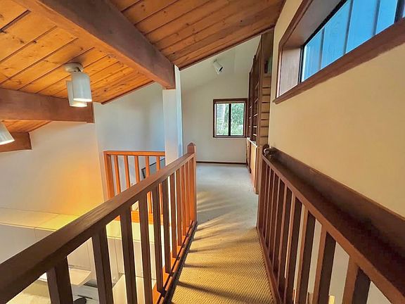 Vaulted ceiling and large windows provide abundant natural light in every room. Sunny gardens and trees surround. Living room + bed room + bath + laundry on the main floor provides convenience.Radiant heat floors, and a propane stove keep the living room and bed room cozy and warm in the winter. The laundry room has new washer/dryer and lots of storage space. Roomy dine-in kitchen has floor to ceiling windows and a skylight. Office on the second floor with a balcony has views of Puget Sound , sky and mountain ranges. Plus the well lit upstairs bonus room can be a yoga/workout space, or guest quarters. Come make it your own.