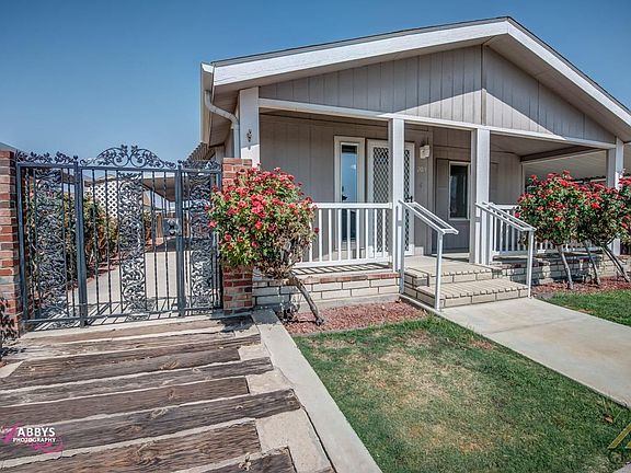 Royal Palms Mobile Home Park, a 55+ community. This mobile home features a front porch perfect for relaxing, 2 bedrooms plus den and is ready to move in with fresh interior paint, new vinyl flooring throughout except new carpets in bedrooms. Open floor plan with vaulted ceilings, dining room, kitchen w/pantry, small bar, gas stove. Den/office with slide door to large covered patio. Indoor laundry with lots of storage cabinets. Primary bath features a walk in tiled shower. Sun screens on windows on West side as well as security gate. Large covered carport with ramp, large shed. Community amenities include pool/spa, clubhouse, mini golf course plus RV storage.