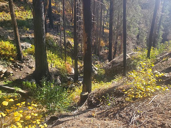Paradise awaits. Beautiful Redwoods, Blackberry bushes and wildlife, with Rancheria Creek running through and along the property. The cabin was sadly destroyed in the last fire, but property still has existing septic. FEMA cleanup has been done.