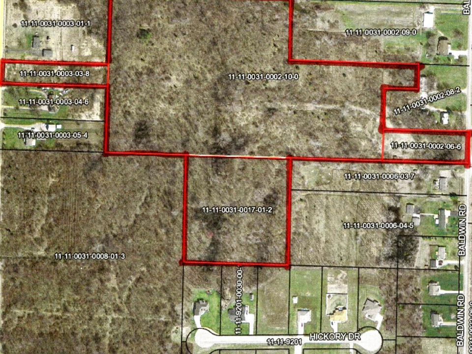 Four separate continuous parcels comprising over 26 acres, with entries on both Baldwin & Snow Rds. Very private setting with mature trees. Build your own home & enjoy the natural setting, or use it for your own private retreat. Owner may consider splitting parcel in half. May be able to develop subdivision with proper approvals.
