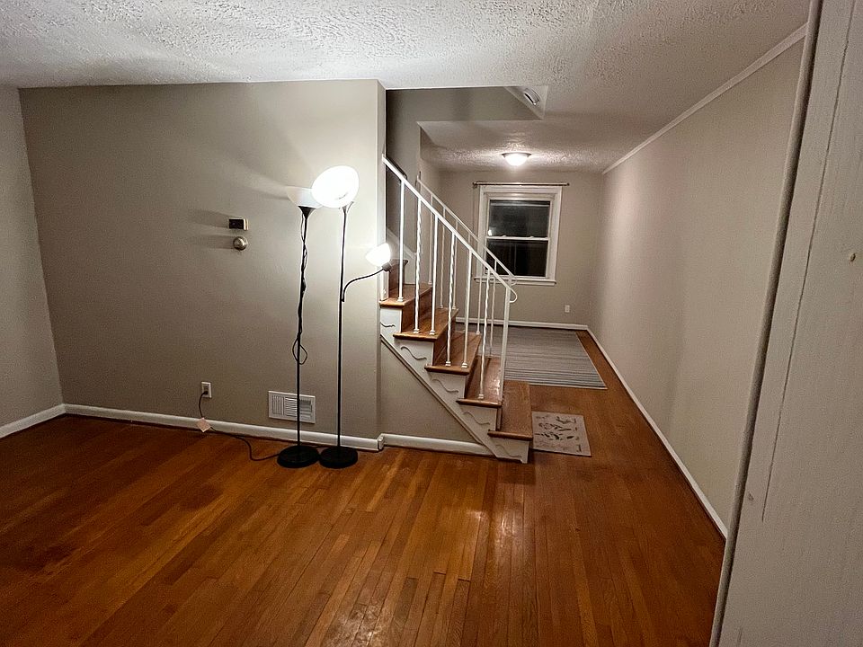Finished lower levelFenced yardHardwood floorsStreet parkingLaundry roomBay window