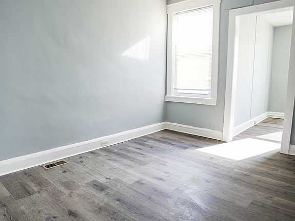 Inside, the home features new LVP flooring throughout and a spacious living and dining area with an open, functional layout. The kitchen offers ample cabinet storage and leads directly to a fully fenced backyard, providing private outdoor space. The basement is clean and ideal for storage. Upstairs includes a large primary bedroom, a full bathroom with tub, and a walkthrough room that can be used as a den, office, or additional sleeping space. This home offers flexibility, solid square footage, and a convenient West Baltimore location close to parks and major commuter routes.