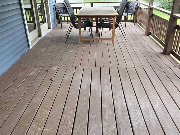 Large entry foyerLong drivewaySeparate dining roomNice front porchThree ample sized bedroomsLarge rear deckDouble lot
