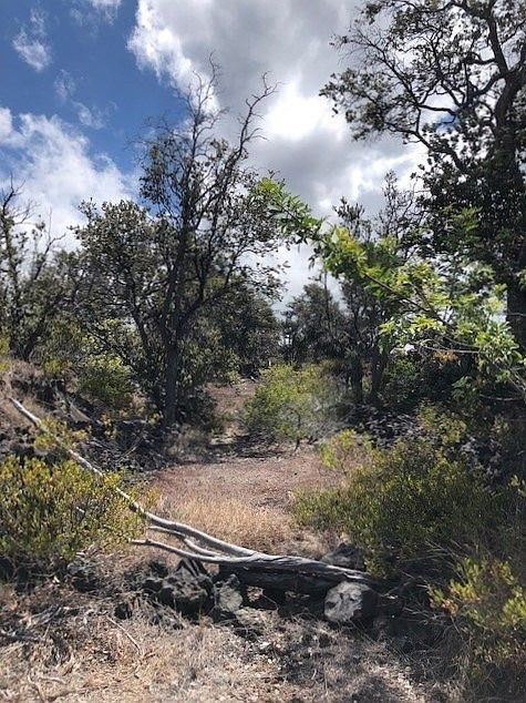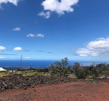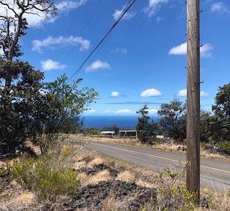 Ready to build on right away. Located in lower subdivision this lot has easy access to highway and all local amenities. Circular, cindered driveway and three terraces already here, and all with views. Existing structure is just to far gone to be salvageable so some clean-up needed prior to new improvements. Big ocean views to the southwest visible from street and especially upper terraces. Power on street has no SSPP fee due. Nice dozed lot in excellent location in affordable Ocean View.