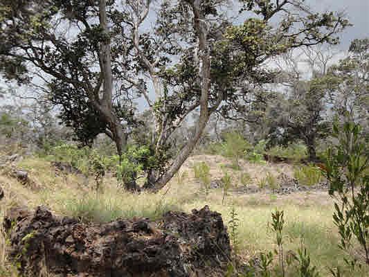 One of three wonderful wide (122' x 356') lots with BIG trees, interesting topography and for the discerning buyer who appreciates and is searching for one of the best in Ocean View. All three lots must be sold together.. Lot 4 has a driveway in, with a chain across the driveway. This lot has a watercatchment tank, has extraordinary beautiful rock formations, has been cleared artistically, and has a house pad, with an ocean view as you look through the olde growth beautiful ohia trees. THere are plantings, and this lot and the two lots below, blend together to give a 3 acre wonderland.Electric/telephone available at the street.h SSPP paid. there is a steel electric pole on the 2nd (middle) lot. One of the very nicest areas of Hawaiian Ocean View Estates, in lower third in quiet neighborhood. Seller may consider 'terms' with good down to a qualified buyer. Ocean View is just 50 miles south of Kailua-Kona where the elevation makes for an almost perfect climate. Warm days, cooler nights, usually enough rain. Come south and build your dream house and be happy forever.